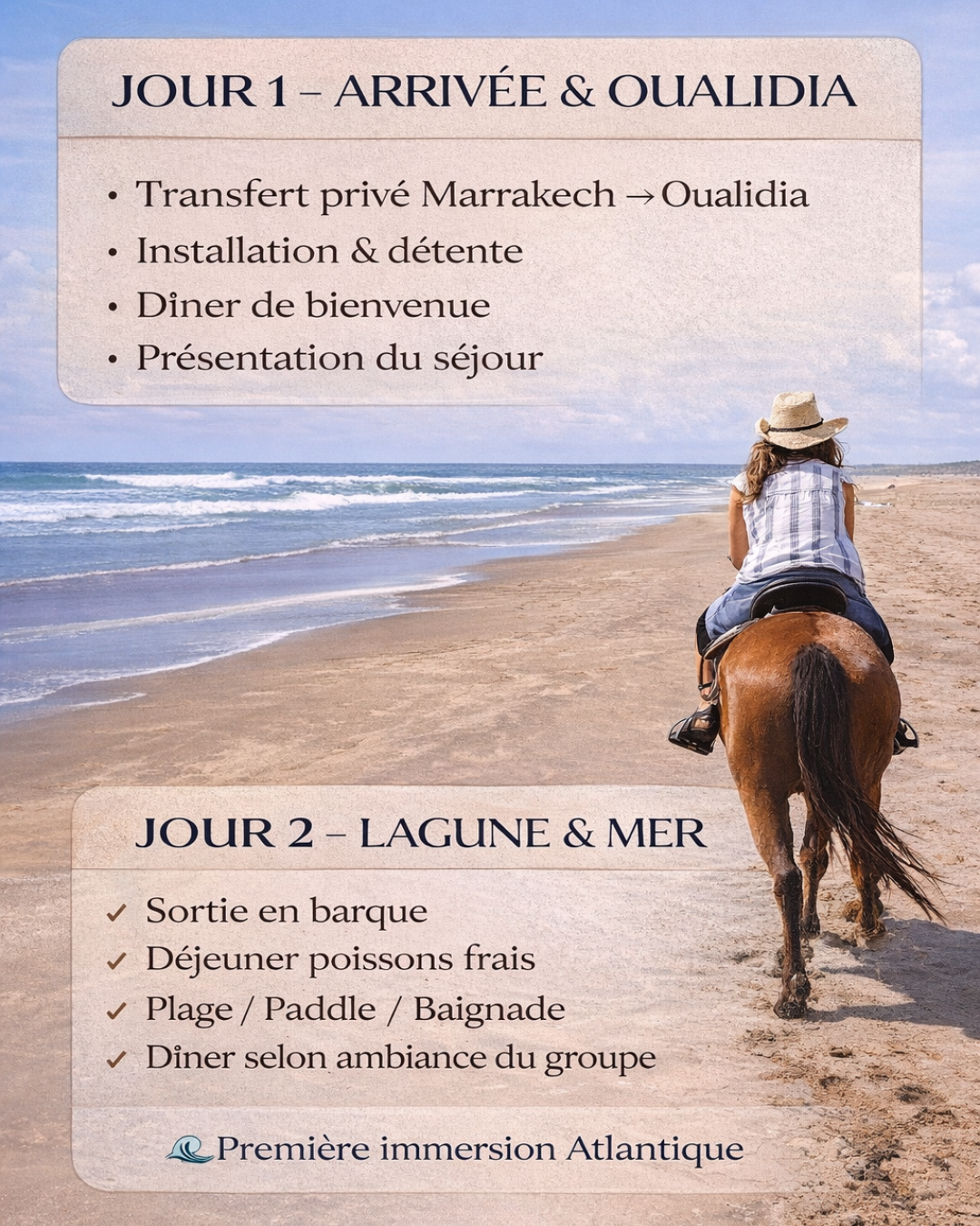 ATLANTIS est une expérience de voyage immersive et détendue, pensée pour découvrir la côte Atlantique marocaine.ses paysages, sa culture et son art de vivre.